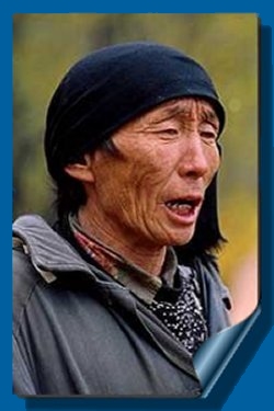 Zostarnutá zašpinená tvár, tmavé oči, tmavé vlasy, svojská frizúra, ktorú dopĺňala ošúchaná šatka. Zababušený do zaplátaných hábov s prevesenou kapsou cez plece stál k nám zoči-voči domorodý obyvateľ Kamčatky!!!! Aháááá, tak o sme práve odhalili to nočné čudo! Domorodec na rannom love...