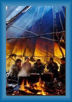 Tie šikmé oči nemali chybu! Rovnaké prižmúrené tmavé oči dokonale skryté na tvári však vôbec nepôsobili podozrievavo, práveže milo a ochotne. Sú tmavé? Či modré? Dlho som uvažovala, ako sa dá odhaliť ich farba. Boli také malinkaté, že by sme mali aj pocit, že majú zredukovanú zrakovú schopnosť. Prenikavé vrásky sa črtali na zastarnutej tvári všetkých domorodcov, ktorí sa na nás neprestávali usmievať. To vyzeráme až tak srandovne? Jáááj, to bude srdečný úsmev z radosti, že nás tu môžu privítať. Aká sláva! Najprv sme si teda niekoľko minút spoločne dookola vymieňali úsmevy :))) hehehe (ako z reklamy na zubnú pastu) a po vydýchnutí si nás usadili na pohodlnú sobiu kožu doprostriedku medzi seba. Bolo ich, hmmm, asi 3 staré tetušky a 2 starí Koriaci. Všetko pohostinní, usmievaví a osamelí domorodci bývajúci v skromnom domorodom "jurta" príbytku.