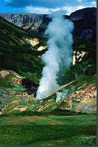 Údolie gejzírov, ukryté v jednom z kaňonov tejto rezervácie, leží vo vzdialenosti približne 200 km severne od mesta Petropavlovsk. V údolí nachádzame početné vodnaté aj "suché" sírové bazény, vyvýšeniny pokryté sedimentami minerálnych gejzírikov a teplomilných rias. Údolie je zaujímavé pre jeho kráterovo vytvarované jamy 25 až 150 metrov široké, 25 až 40 metrov hlboké a vyplnené horúcimi a neobyčajne sfarbenými termálnymi vodami.
